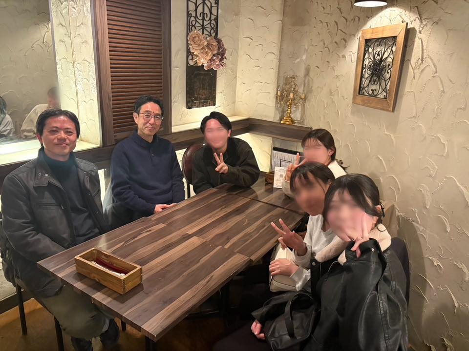 大学教授と学生のように見えるかもしれませんが、そうではありません。勤め人のおじさんたちと女子大生です。