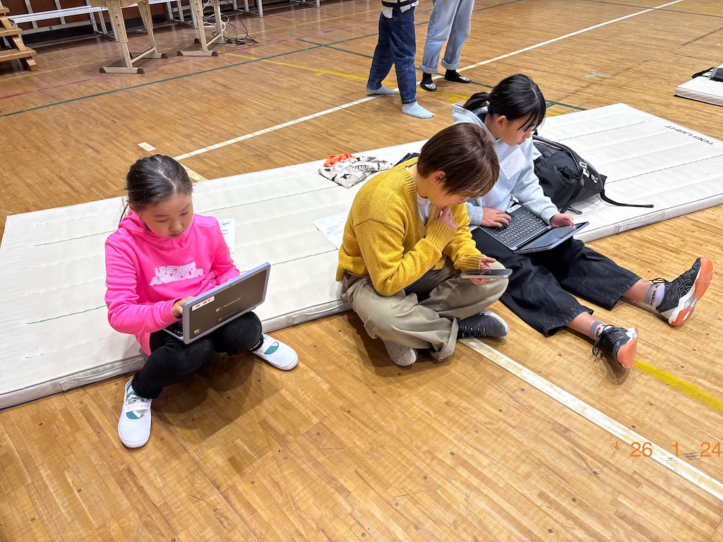 今日は神津島小学校の広い体育館で思いっきりチャレンジ!