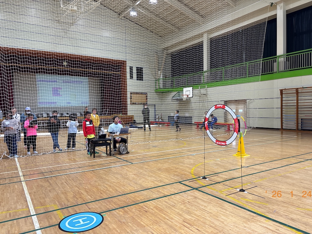 広くて安全な体育館に特設ドローンコースを作り思いっきり飛ばす